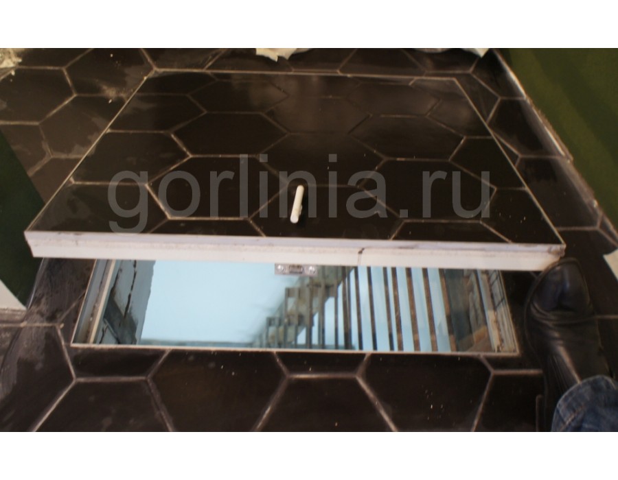 Потайные напольные люки АМО с амортизаторами выпускаются из стальной трубы сечения 30х20 мм и горячекатанного сортового уголка 40х40х4 мм. Окрашен в высокотемпературной камере порошковым покрытием. Предназначен для использования внутри помещений. Изделие оснащено амортизирующими подъемниками, внутренними петлями, замком с язычком и съемной ручкой. Тип открывания шарнирного механизма: откидной с одной осью вращения. Потайная крышка двери с гипсоволокном на металлокаркасе подготовлена под облицовку керамической плиткой (ламинированной доской). Толщина пирога (материал + клеевой слой) не более 15 мм.