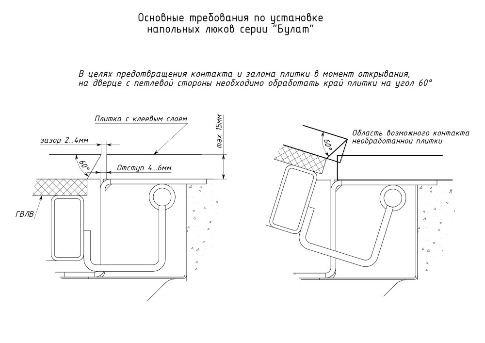 Облегченная модель без щелей в полу со смещенными за ось открывания петлями. Легкая ходовая часть и удобный монтаж. При формировании напольного отверстия обратите внимание на защитные кожухи шарниров. Коробки выходят за посадочную отметку по плечевой стороне.