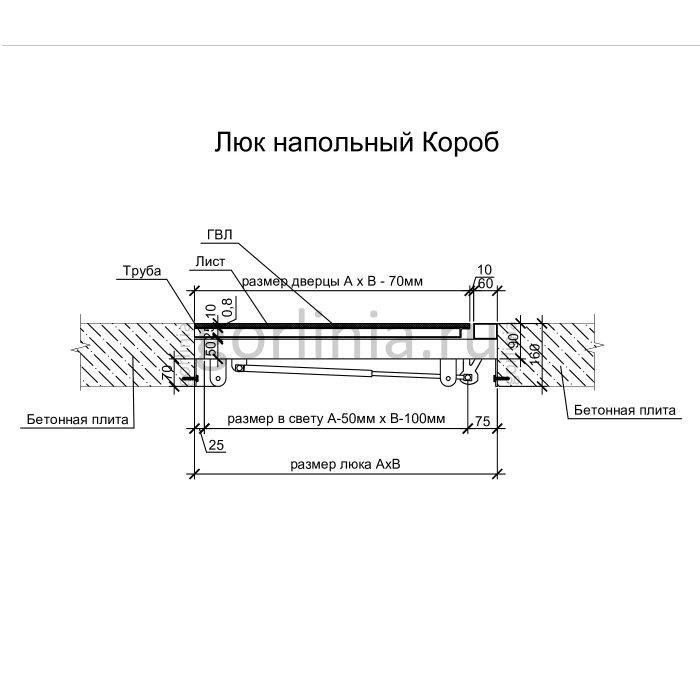 Рама без наличников выставляется в существующем отверстии 70*90 см с допусками, крепится в перекрытии через вертикальные пластины даже когда Ваш ремонт закончен и пол выложен керамогранитом или настелена ламинированная доска.